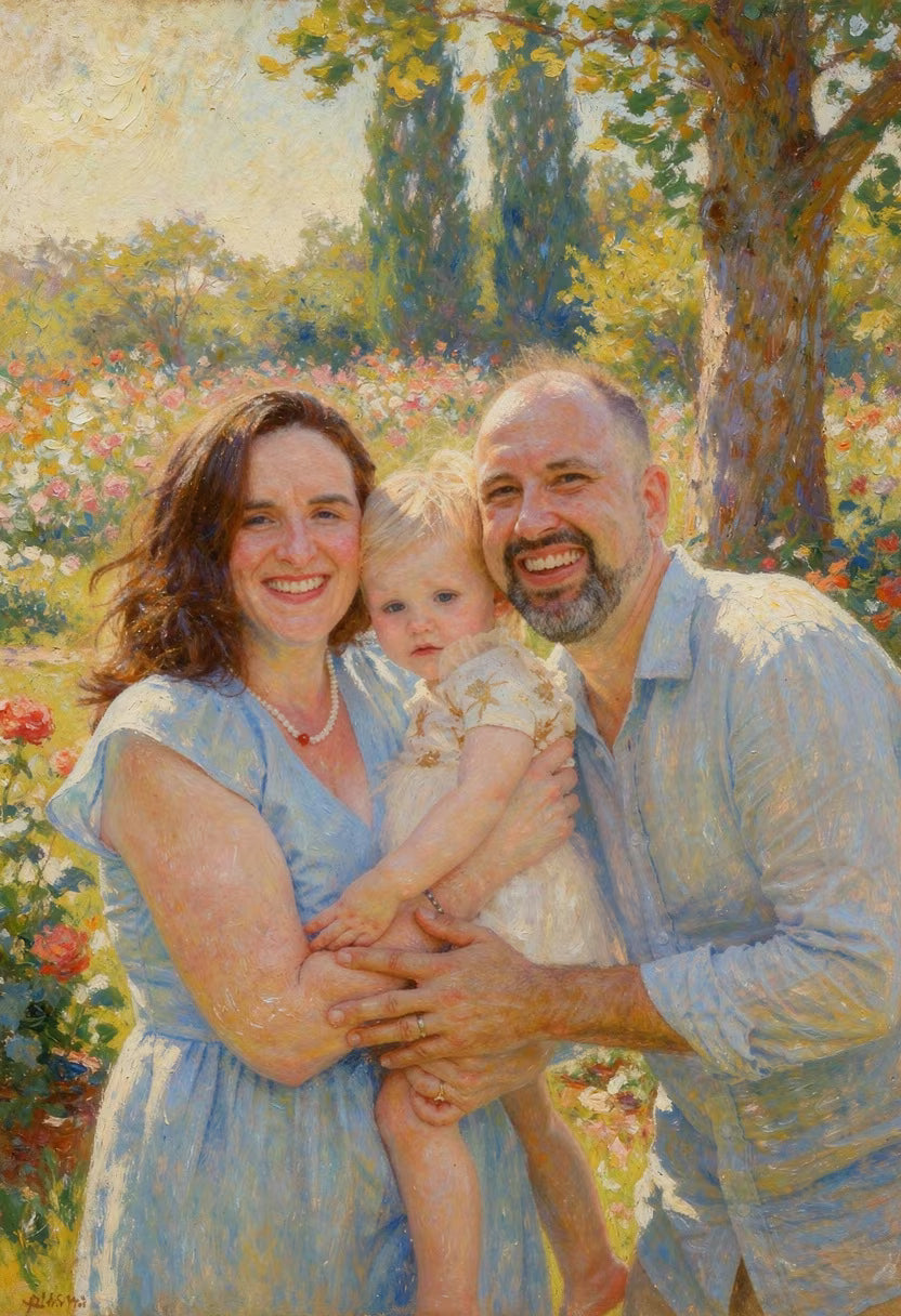 A commissioned portrait takes weeks and costs hundreds of dollars. Lark delivers your painting in under 30 seconds.